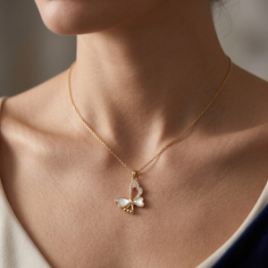 Enchanted Butterfly Mother of Pearl & Crystal Pendant