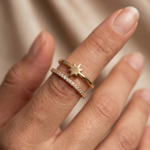 Gold-Tone North Star Double Band Pavé Adjustable Ring