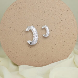 Silver-Tone Baguette Crystal C-Hoop Earrings