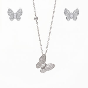 Sparkling Pavé Butterfly Pendant & Stud Earring Set