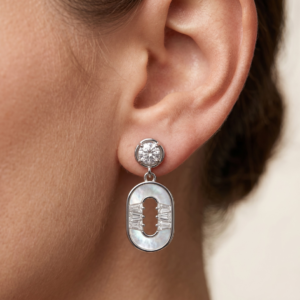 Silver Crystal & Mother of Pearl Drop Earrings