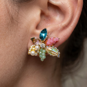2-in-1 Reversible Black & Crystal Gold Stud Earrings