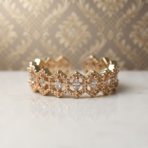 Vintage Gold Scalloped Band Ring – Milgrain Texture with Marquise Crystals