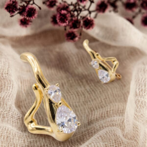 Organic Wave Pear-Cut Crystal Drop Hoop Earrings