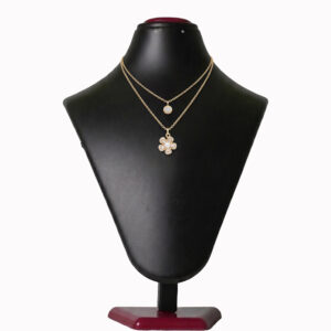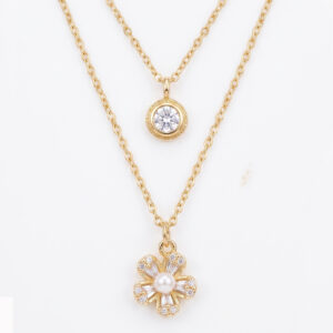 Gold Plated Double Layered Solitaire & Pearl Blossom Necklace