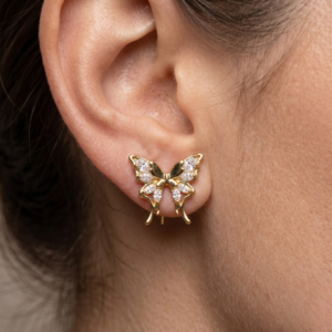 Golden Monarch Marquise Crystal Butterfly Studs