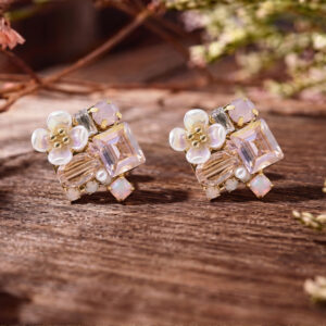 Luxury Square Pearl & Crystal Frame Stud Earrings (Gold Tone)