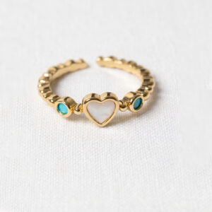 The high-polish gold finish is complemented by a subtle chain-link detail on the shoulders of the band, adding a touch of contemporary edge to this sentimental design. Whether you’re wearing it as a self-love reminder or gifting it to someone special, this ring stands out with its radiant sparkle and meaningful message.