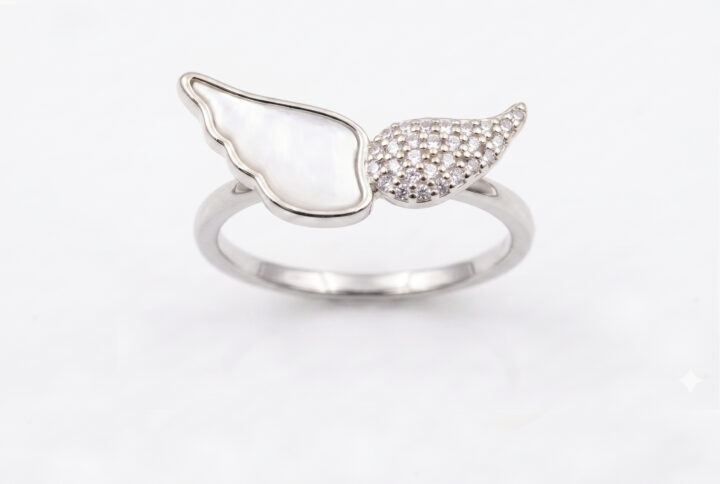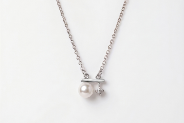 Floating Pearl Detail: A single, high-luster white pearl (faux or shell pearl) is suspended at the base, adding a timeless touch of grace to the modern frame.