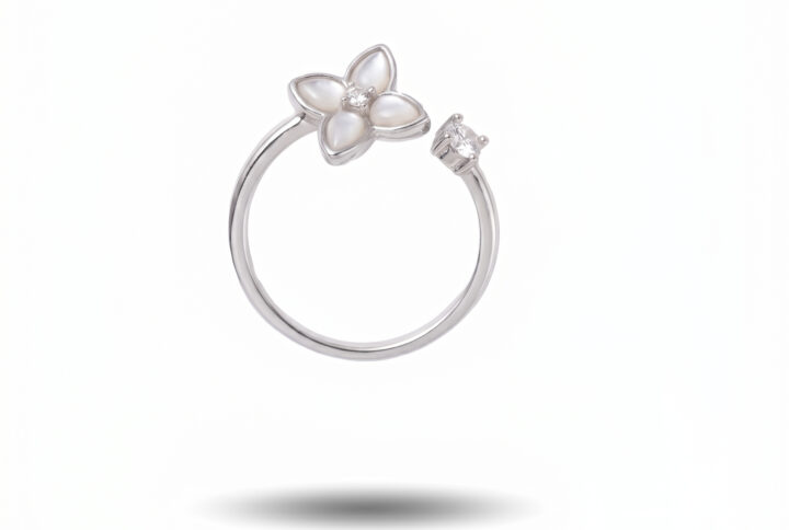Charcoal Faceted Center: A multi-faceted smoky grey stone that offers a deep, moody sparkle, mimicking the look of “Salt and Pepper” diamonds.