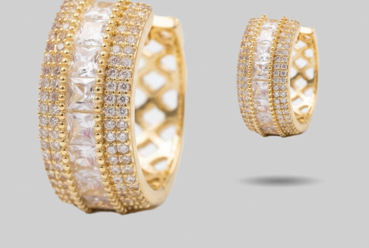 The Bands: One band is sleek and minimalist, while the other is half-encrusted with brilliant crystals to ensure the piece sparkles from every angle.