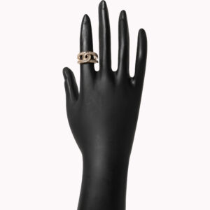 Infuse your jewelry collection with romantic charm and modern flair. This Rose Gold Interlocking Link Ring features a series of elegant, interconnected geometric links that create a continuous, woven appearance across the finger.