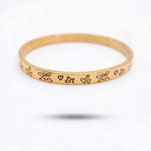 Intricate Embossing: Each bangle is expertly engraved with a continuous heritage pattern—reminiscent of infinity loops or delicate bows—adding a tactile, vintage dimension to the sleek silhouette.